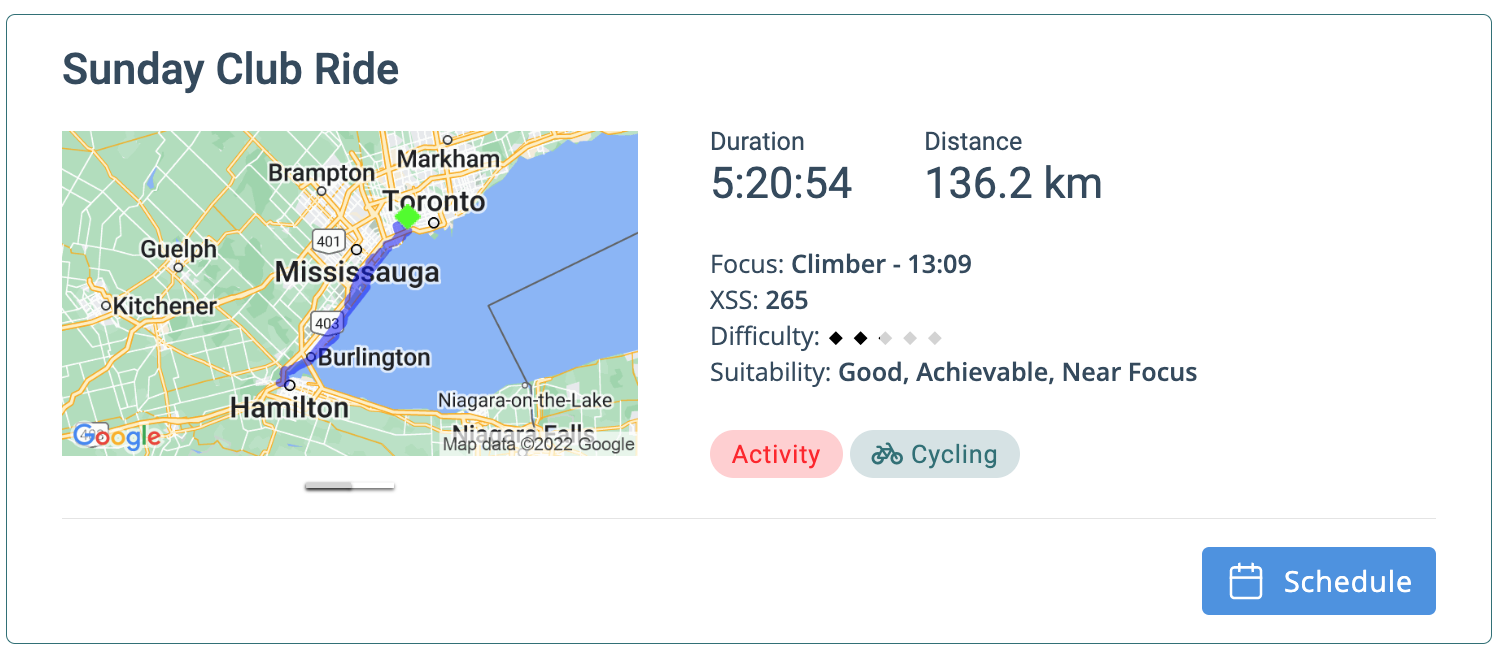 - Recommended XSS for your workout, outdoor ride, or virtual ride