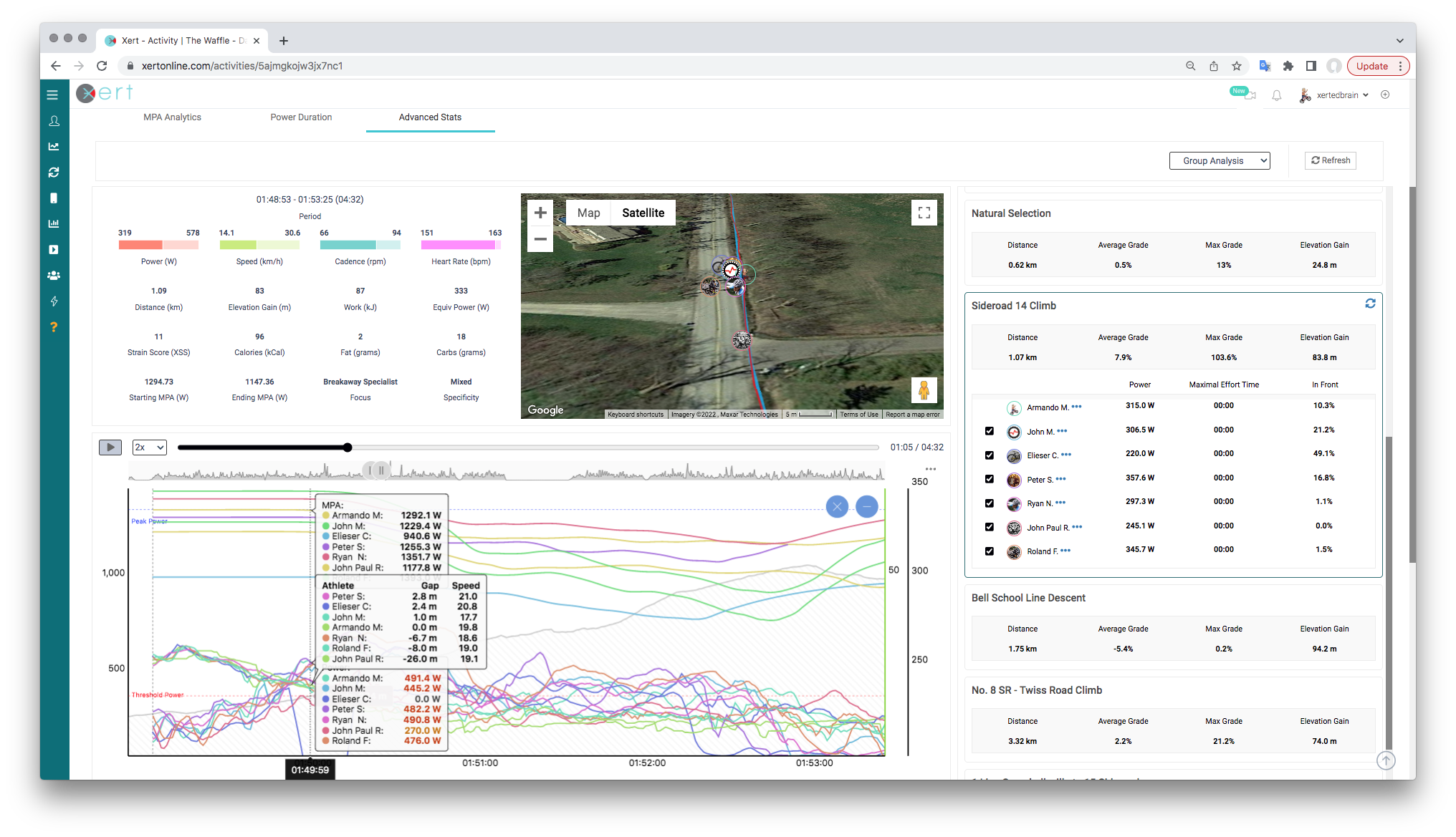Introducing Group Ride Data Analytics with Flyby.  This new feature from Xert Breakthrough Training allows athletes, coaches and team directors to analyze team data all on one screen.  Xert now detects when an activity was performed with other Xert users and enables you to add their data to your chart, see who was in front / behind and by how much and even playback the ride using GPS flyby on Google Maps.  It’s the first of its kind to allow data from multiple athletes to be displayed and analyzed all on one screen.