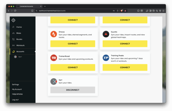 - Confirm your Xert account is properly linked in the Hammerhead Dashboard under Connected Accounts.